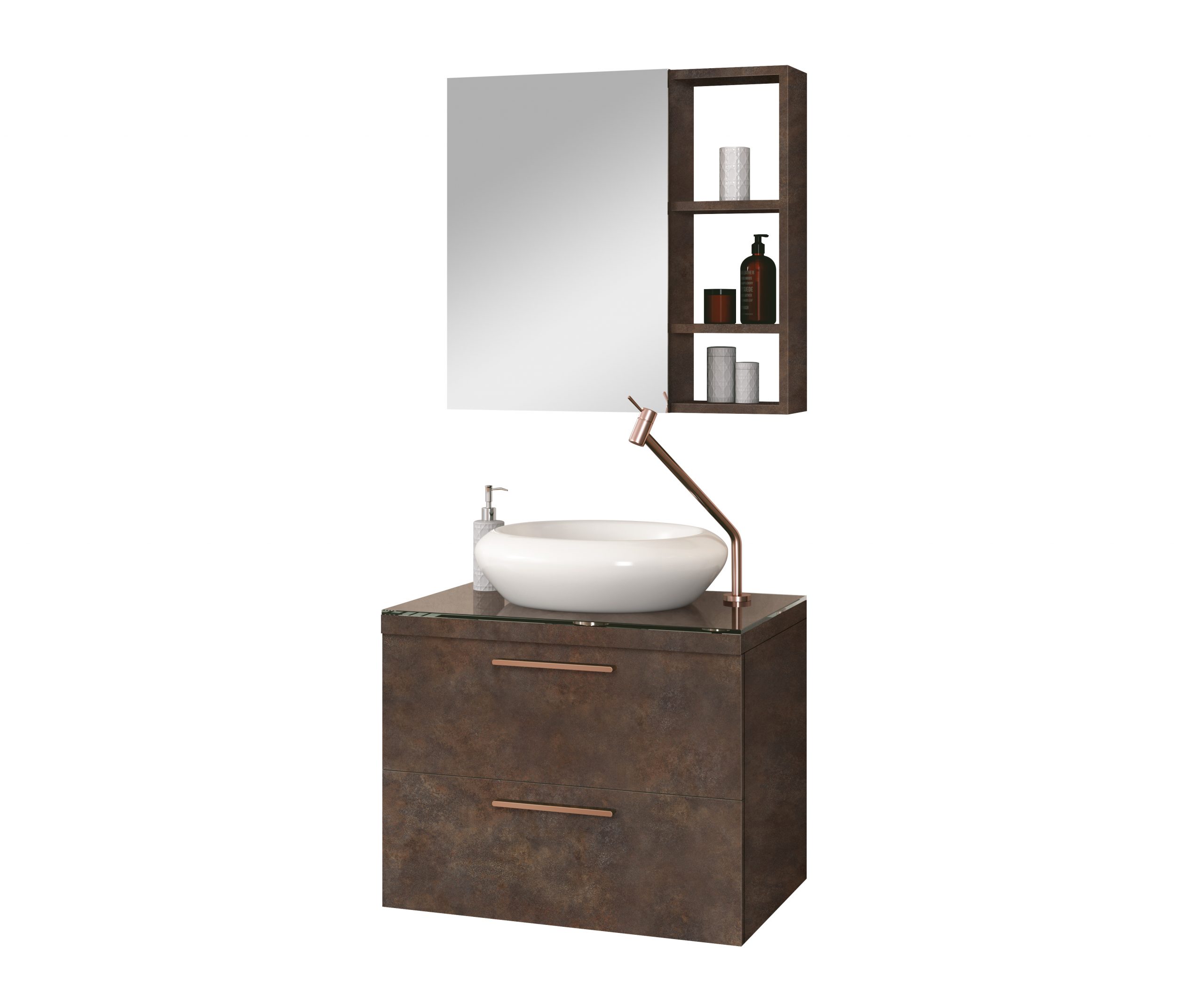 Espelheira Santorini – Prateleira vidro de 6mm, dobradiças reforçadas com sistema Slow que garante maior estabilidade e amortecimento ao fechamento de porta.