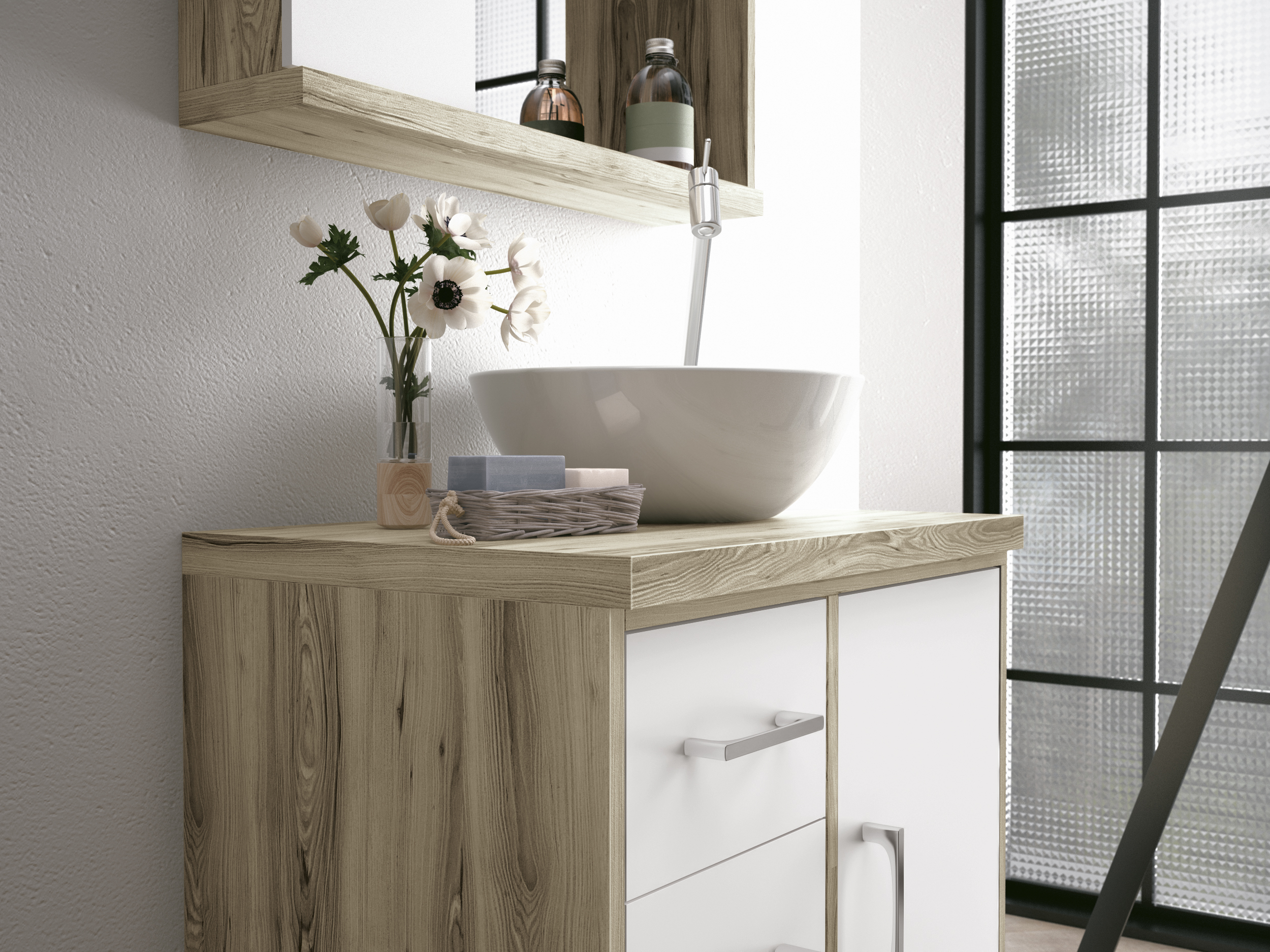 Espelheira, base 30mm, auxilia na organição e traz maior beleza ao banheiro.